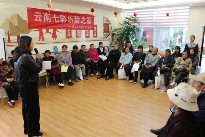 生日会不仅有温馨陪伴,更融入了实用服务。社区在签到席旁设置安全感调查问卷填写处,让老人们在参与活动的同时,也能了解并融入社区工作。活动开始前,李春媛结合近期网络电信诈骗案例,用通俗易懂的语言提醒老人们提高警惕,守护好“钱袋子”,贴心的提醒让老人们倍感安心。