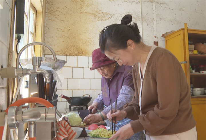 吴忠艳与婆婆一起做饭。(丽江融媒记者 杨俐娜 摄)