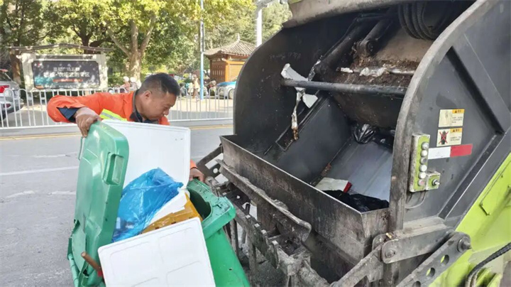 “快来倒垃圾,快来倒垃圾喂,垃圾不乱丢……”在云南丽江的街头巷尾,每当这首熟悉的童谣响起,就意味着垃圾清运车到了。沿街商户拎出提前打包好的生活垃圾,有序投放,而垃圾清运车司机张浩也随之展开一系列规定动作——停车、操作铲斗、清运、上车前往下一个清运点,循环往复。