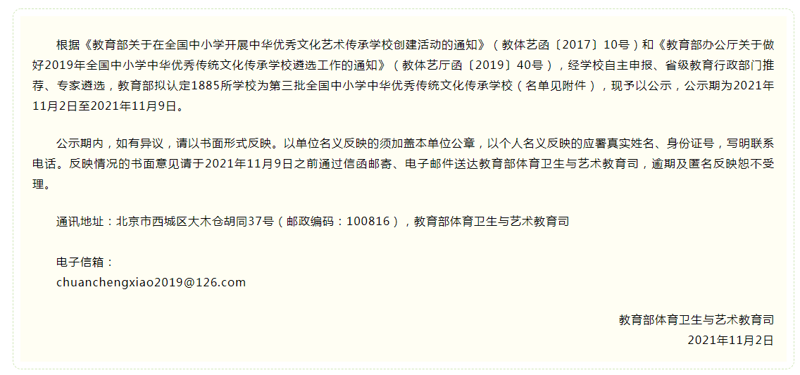 中华优秀传统文化传承学校公示名单
