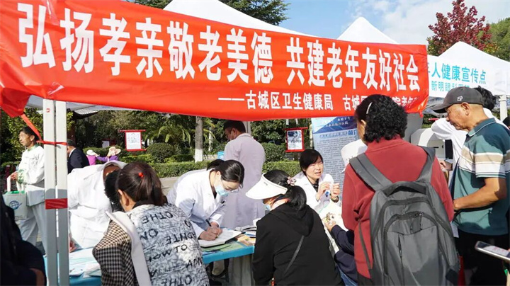 活动现场,医疗服务专区始终人气满满。丽江市中医医院、古城区医院等医疗机构组成的志愿服务队,为老年人提供免费的口腔检查、眼科筛查等专项服务,医护人员耐心细致地查看检查结果,用通俗的语言讲解健康知识;按摩保健区里,专业手法缓解了老人们的身体酸痛,一句句“您放心,这个穴位按揉能缓解疲劳”让老人们倍感安心。不同于传统健康服务,此次活动更注重“全人健康”关怀,不仅关注老年人的身体状况,还通过健康科普引导他们建立积极的生活心态,让温暖从指尖传递到心间。