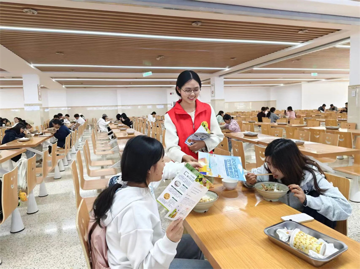 团市委联合丽江师范学院、丽江文化旅游学院、丽江职业技术学院,组织青年志愿者在学校食堂开展“粮食节约人人有责 青春守护中国粮”主题宣传活动。志愿者在食堂向就餐师生发放宣传手册,通过食堂宣传栏播放粮食?;は肿葱惫鄹惺芪夜甘成肿?、校园粮食浪费案例,生动展现节约粮食的重要性。