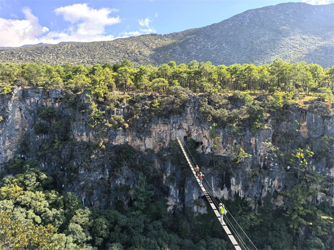 在东巴谷五星级汽车自驾运动营地,游客们体验飞拉达项目的惊险刺激。(供图)