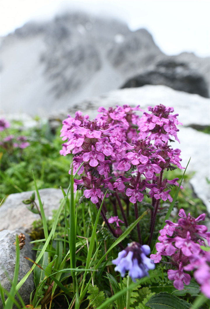 在玉龙雪山拍摄的绽放的丽江马先蒿。(丽江融媒记者 赵庆祖 摄)