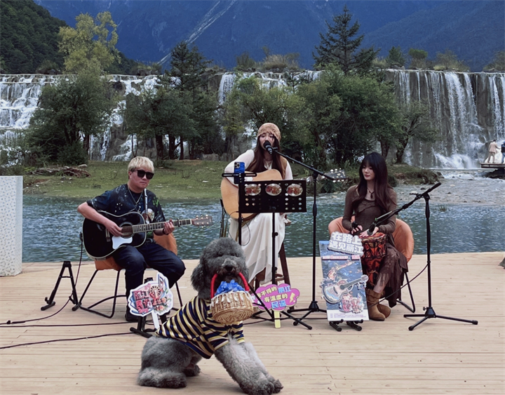 “日光倾城”乐队在蓝月谷进行2025丽江民谣音乐季路演。(丽江融媒记者 雷凤姣 摄)