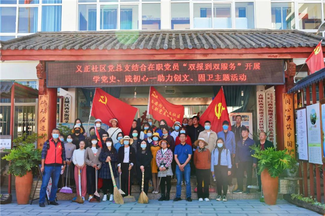 10月25日,西安街道组织义正社区“双报到双服务”在职党员,街道和社区干部职工等30余人,深入龙潭广场商业街区开展“学党史、践初心”大扫除活动,助力古城创文、固卫工作。