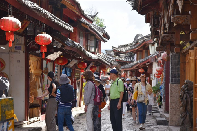 游客在丽江古城观景闲逛。(丽江融媒记者 段玉菊 摄)