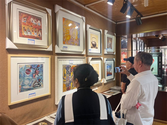游客在白沙锦绣艺术院欣赏刺绣作品。(丽江融媒记者 段玉菊 摄)