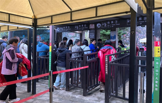 游客在玉龙雪山剧场检票口检票,前往欣赏原生态大型实景演出《印象·丽江》。(丽江融媒记者 段玉菊 摄)