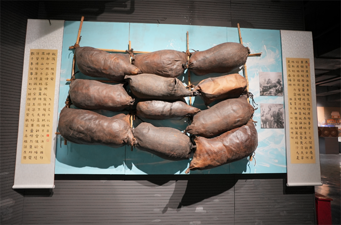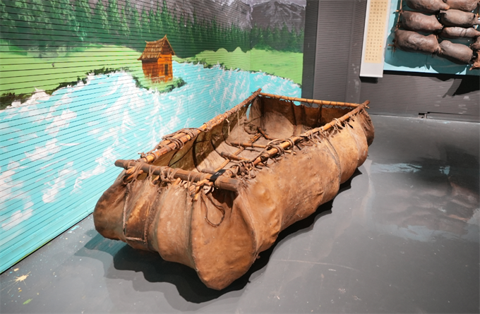 丽江茶马古道博物馆藏品——渡江用的革囊。 ( 丽江融媒记者 李扬 摄)