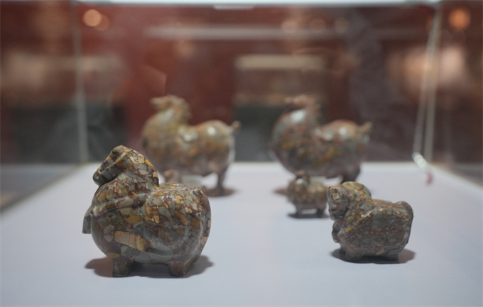 除了厚重的历史藏品,博物馆还藏着让人眼前一亮的文创惊喜。陈国正以五花石为原料,打造出马、青蛙、虎等动物造型的文创产品,既融入了纳西族传统信仰与东巴文化,又呼应了丽江 “花马国” 的美誉。