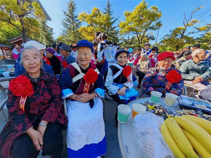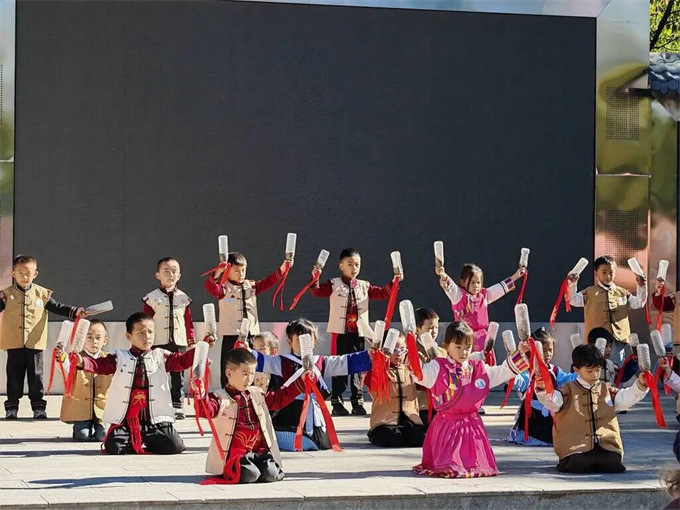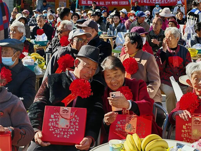 随着气温逐渐升高,现场的活动气氛也愈发浓厚。福慧学校的少先队员们同社区干部一起走到老人身边,为他们佩戴上大红花。“祝爷爷奶奶身体健康!”“祝孩子们学习进步!”老人与孩子们互相送祝福,一句句真诚的互动,让温暖与文化传承在这一刻具象化。
