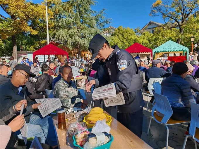 广场中央,一场场贴近老年人生活的歌舞表演正精彩上演。片区民警带来的快板《民警说反诈之防养老诈骗篇》引起老人们的共鸣,老人们一边听快板,一边互相小声私语:“现在诈骗手段五花八门,骗子就专盯着我们老年人的钱包,一定要警惕哦!”由本地歌手木诚、和锦带来的《谷气》《纳西酒歌》《喜庆歌》等纳西歌曲响起时,熟悉的旋律让老人们忍不住轻轻跟着哼唱。