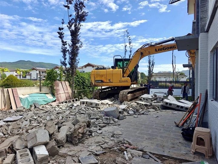 拆除现场,各部门紧密联动、协同配合,严格依照法律法规推进处置工作。为确保拆除过程安全、高效,工作人员采用“人工+机械”相结合的方式,有序对违建部分进行拆除。整个过程规范有序,最大限度降低了对周边居民正常生活的影响。