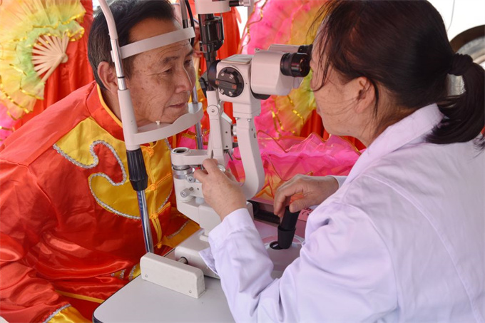 丽江爱尔眼科医院的医护人员为老人进行眼部检查。(丽江融媒记者 段玉菊 摄)